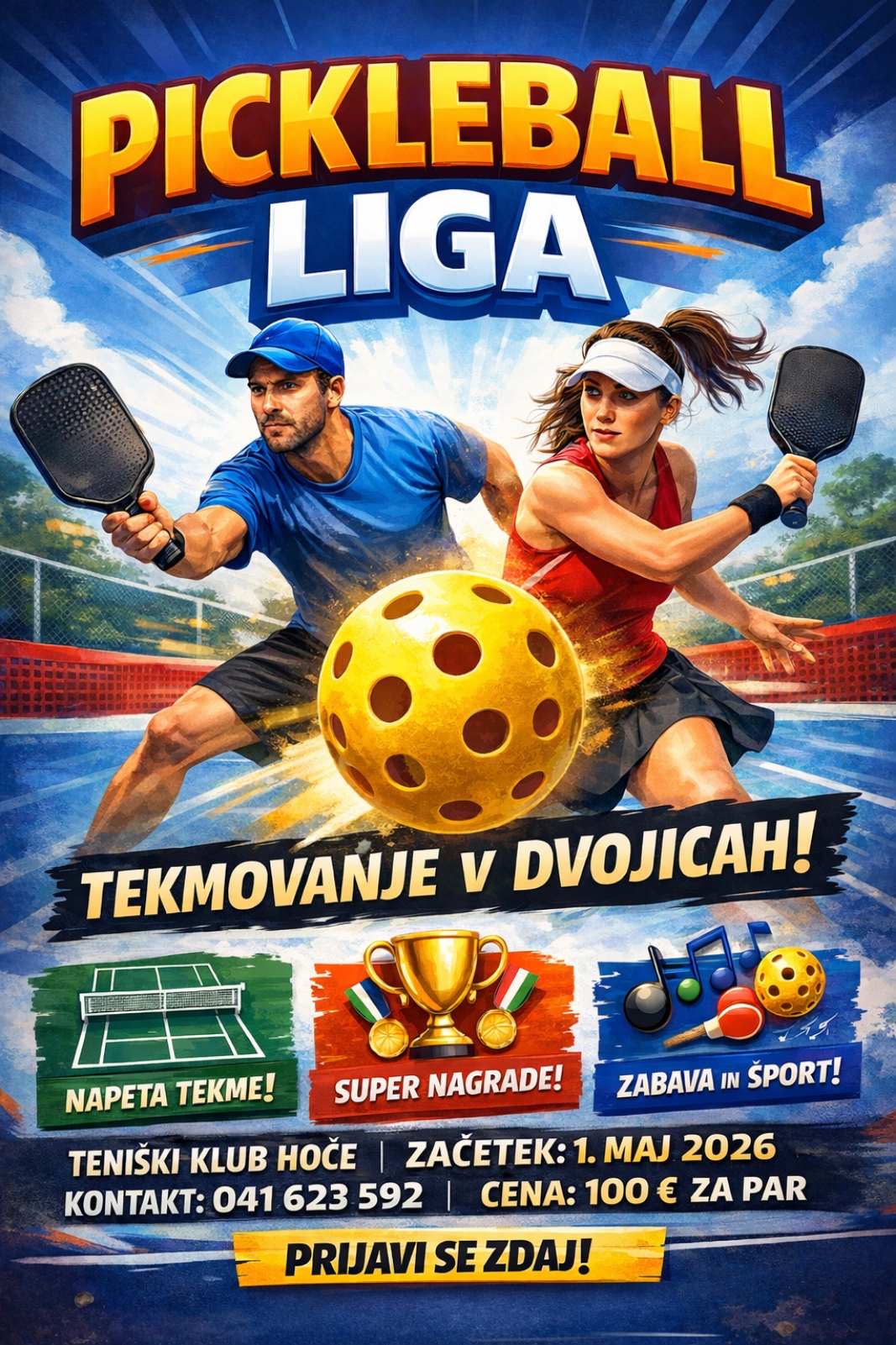 Teniški klub Hoče bo izvedel investicijo v ventilacijsko grelno strojnico, zasilno strojnico, zasilna vrata in vhodna krožna vrata. Z investicijo bo klub ohranil delovno mesto, zmanjšal porabo zemeljskega plina in s tem zmanjšal onesnaževanje okolje, zmanjšal stroške delovanja, povečal varnost, povečal možnost delovanja tudi v zimskem času ter ustvaril možnost širitve trenutnega programa kluba. V sklopu projekta bo skupaj s partnerjem Društvo upokojencev Hoče nabavila potrebne rekvizite oz. opremo za izvedbo projektno predvidenih aktivnosti. V času zimske sezone 25/26 bosta izvajala aktivnosti odbojke in badmintona na pesku, izvedla bosta medgeneracijsko tekmovanje, tečaje za tenis, teniški kamp in razstavo s stalno zbirko. Z izvedbo aktivnosti bo projekt zagotovil možnost izvajanja športnih in teniških aktivnosti čim večjemu številu ljudi, predvsem pa ranljivim skupinam (starejšim nad 65 let, mladim, socialno šibkejšim in brezposelnim).