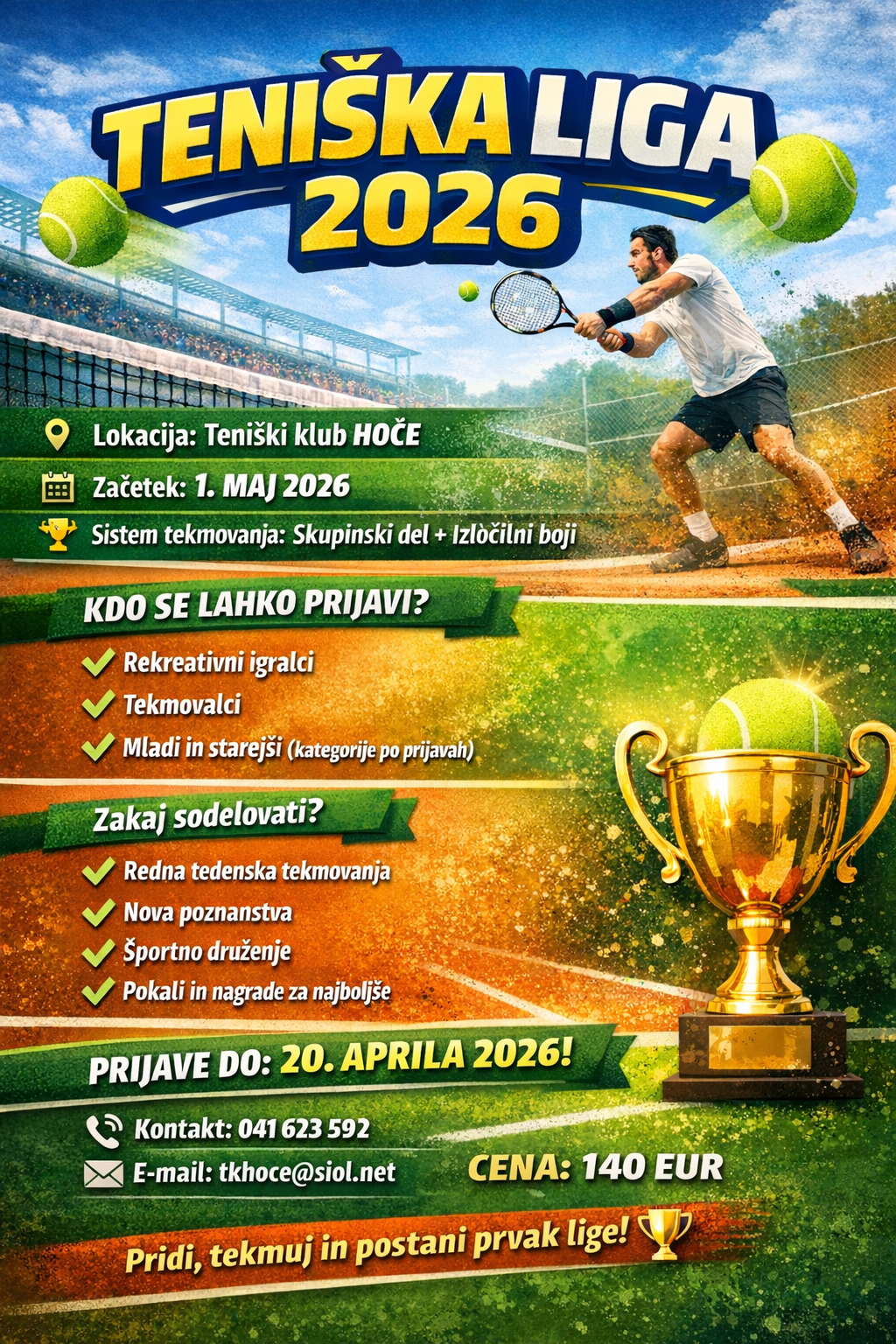 d) TK bo izvedel tečaj tenisa